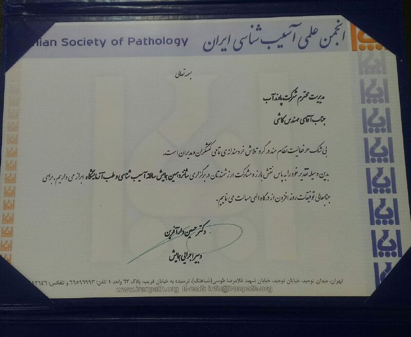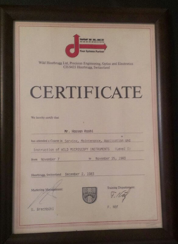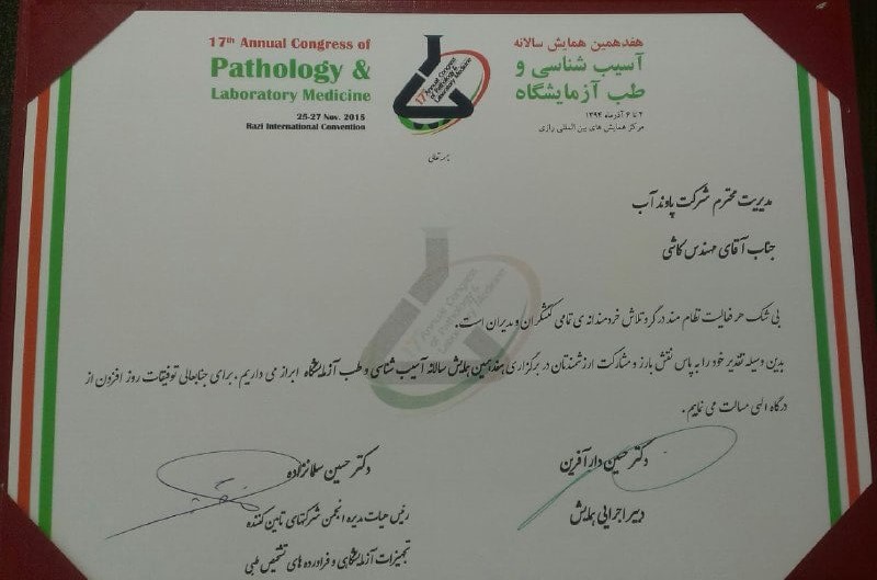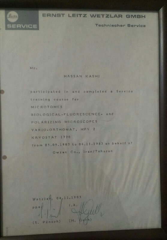 مسئول شرکت مهندسی پزشکی پاوند آب جناب دکتر حسن کاشی با بیش از سی سال سابقه در امر تولید، واردات، تعمیر و نگهداری سیستم های پاتولوژی و میکروسکوپی دارای مدرک تخصصی میکروسکوپی و پاتولوژی از لایتز آلمان و لایکا ومدرک تخصصی میکروسکوپ های جراحی و تحقیقاتی از ویلد سوئیس .